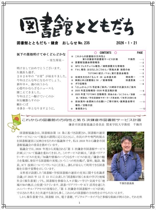 巻頭には鎌倉市図書館協議会委員長よりご寄稿いただくことができました。